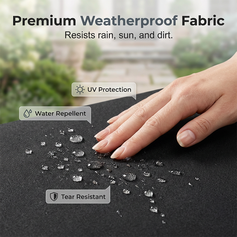 PRÉMIOVÝ VODĚODOLNÝ MATERIÁL - Vyrobeno z odolné syntetické směsi, která účinně odolává dešti, slunečnímu záření i nečistotám a udržuje základnu jako novou po celý rok.